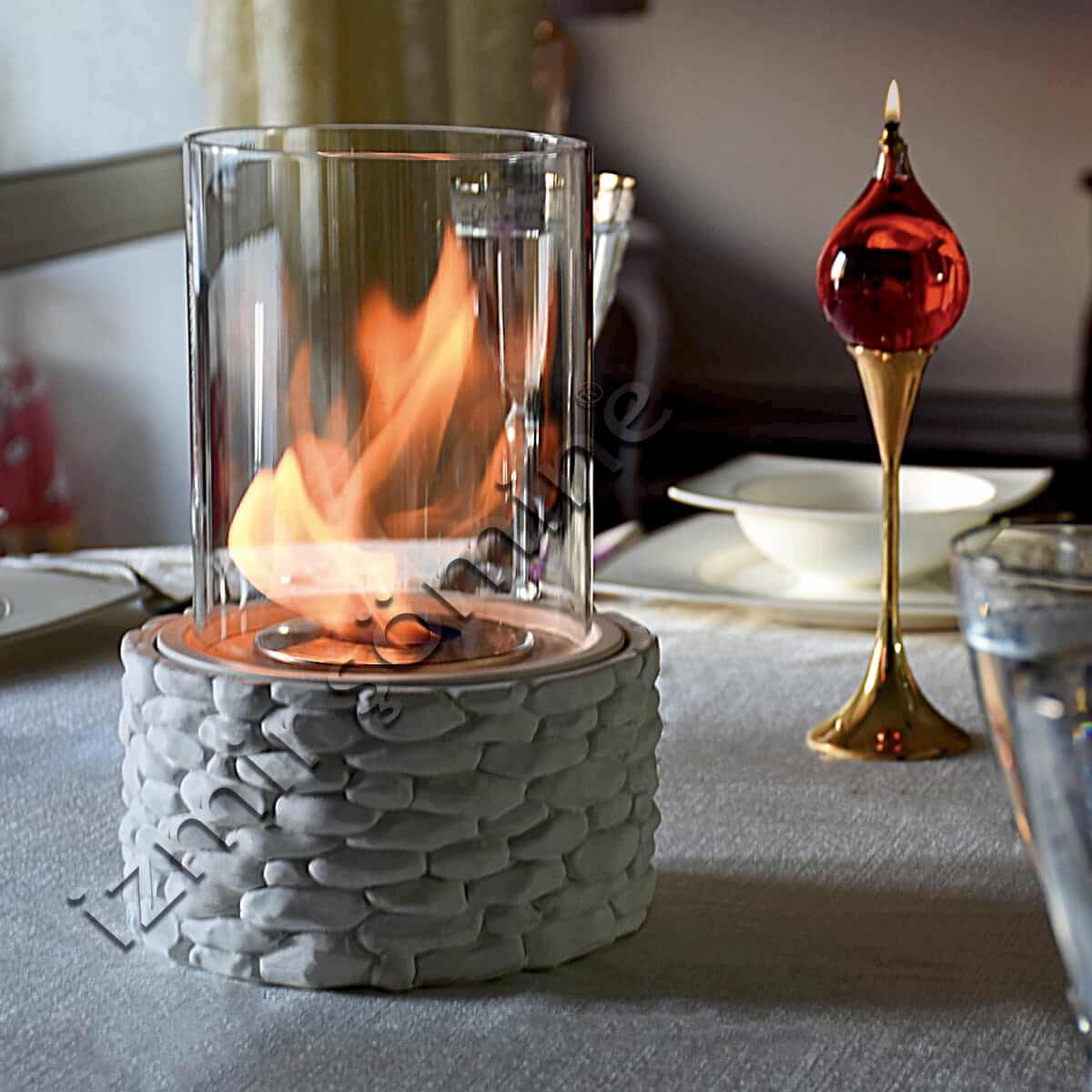 Doğal çakıl taşı görünümlü bu masaüstü şömine şıklığı ve görselliğiyle bioethanol şömine keyfini masanıza kadar taşıyacak hoş bir modeldir. 15 metrekare kadar bir alanı ısıtabilen bu model siyah ve beyaz renk seçenekleri ile beğeninize sunulmuştur.